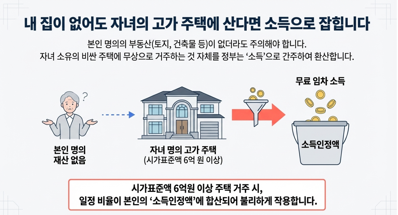 본인 명의의 집이 없어도 '무상 거주'가 소득으로 잡힐 수 있습니다.