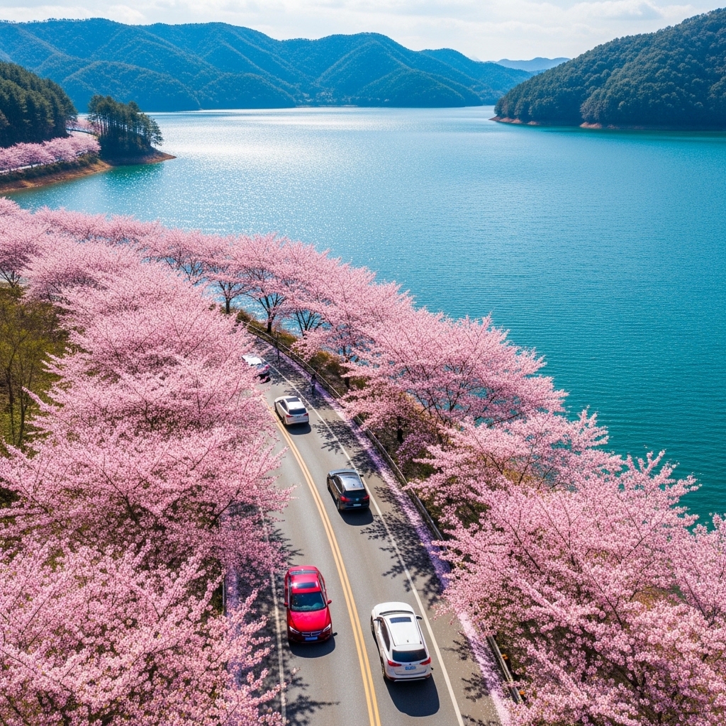 대청호를 따라 끝없이 이어지는 벚꽃길은 국내에서 손꼽히는 장거리 코스입니다. 인파가 분산되어 비교적 여유로운 드라이빙이 가능합니다.